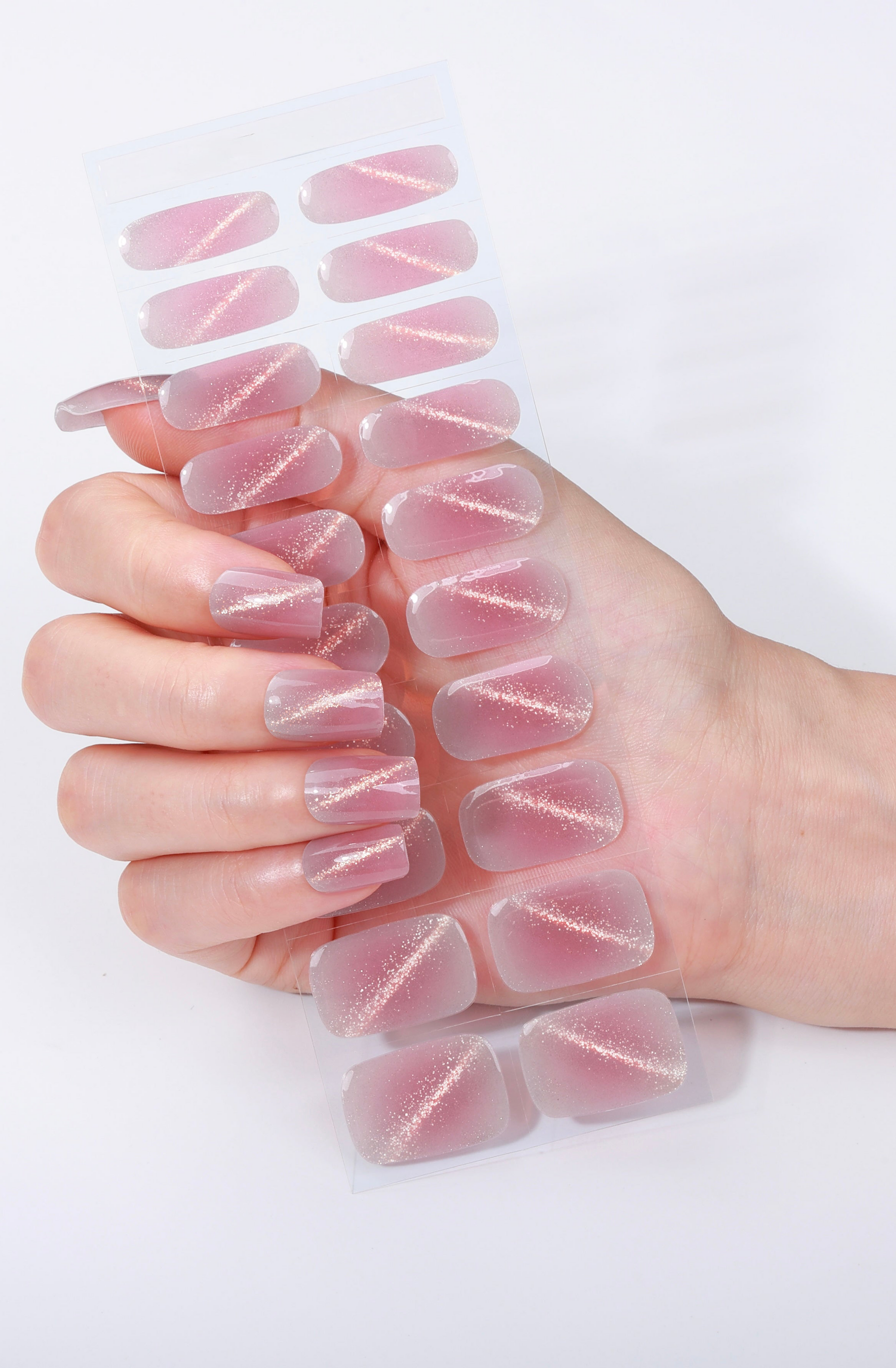 Soft blush pink with pearlescent shimmer and a silky gradient glow—elegant, luminous, and effortlessly chic.