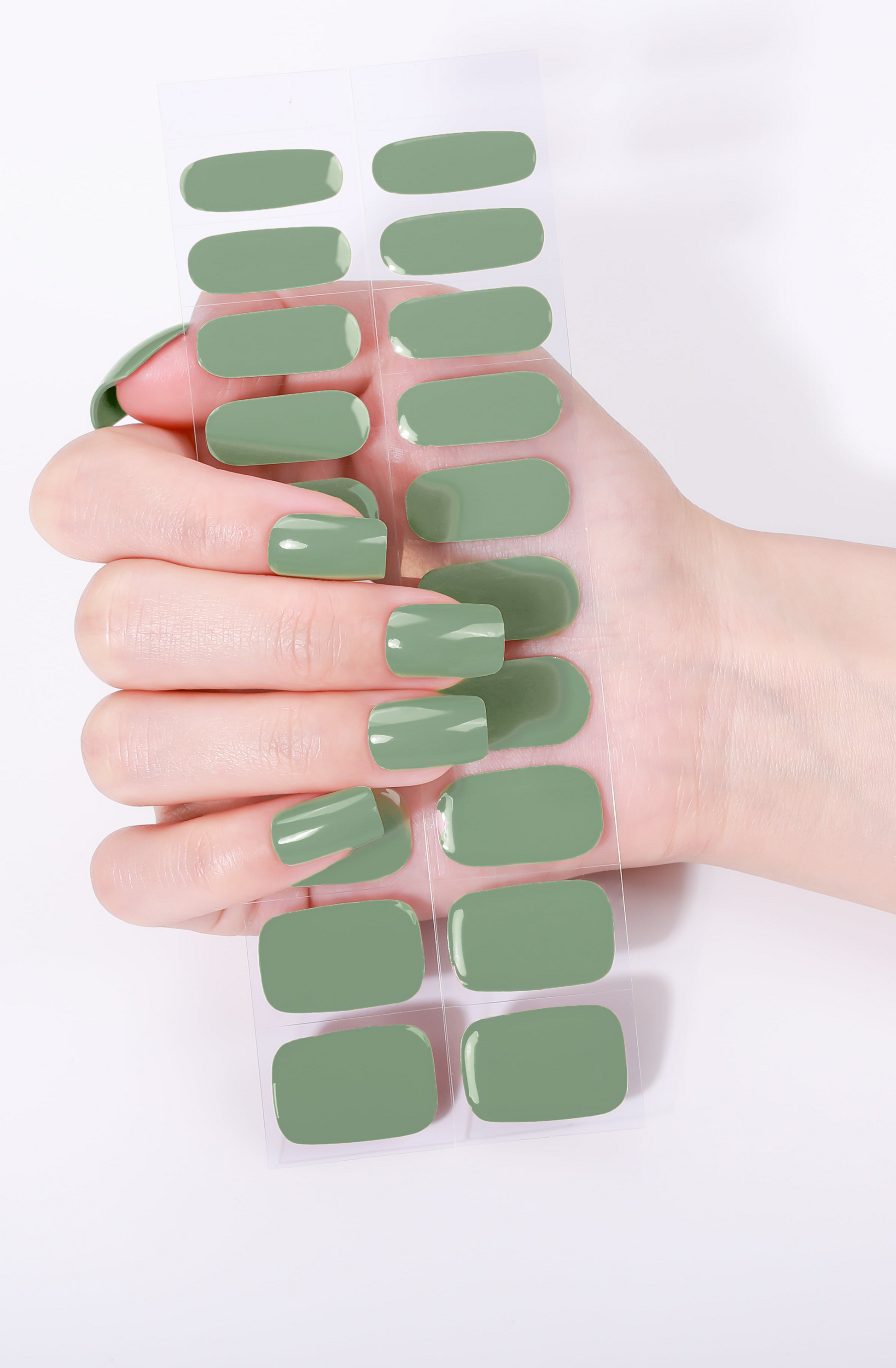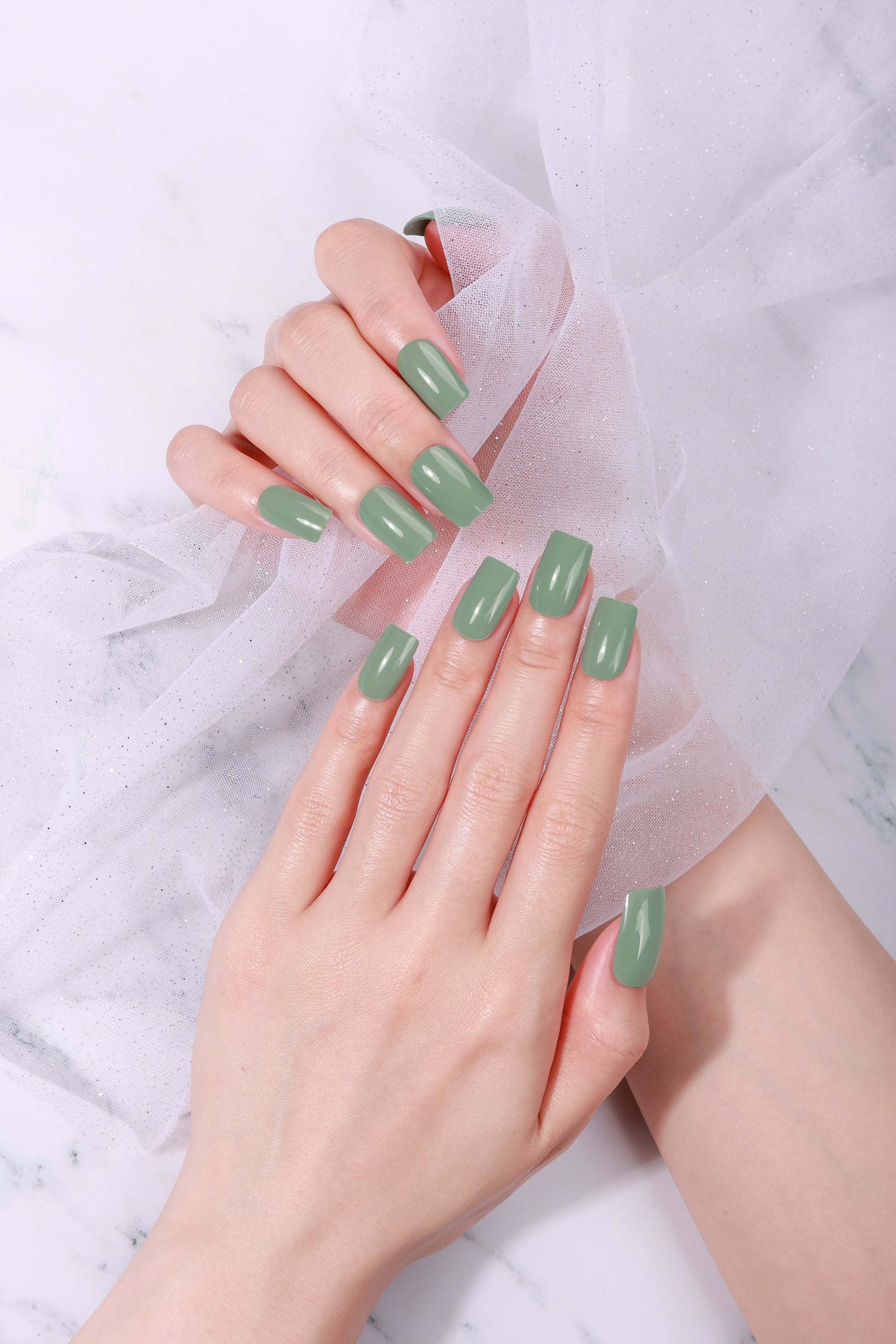 Glossy muted sage green with a smooth finish—calm, chic, and effortlessly modern.