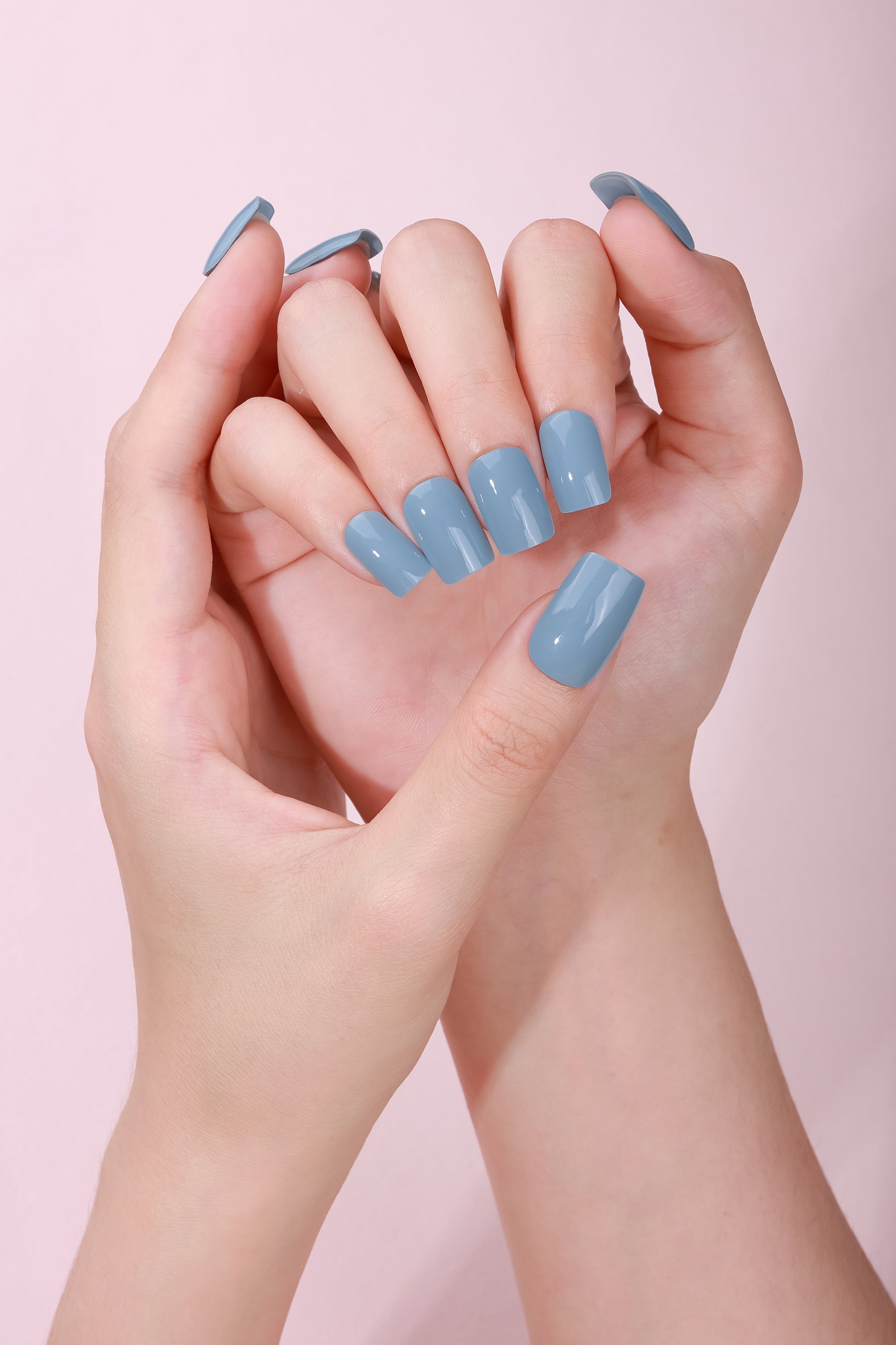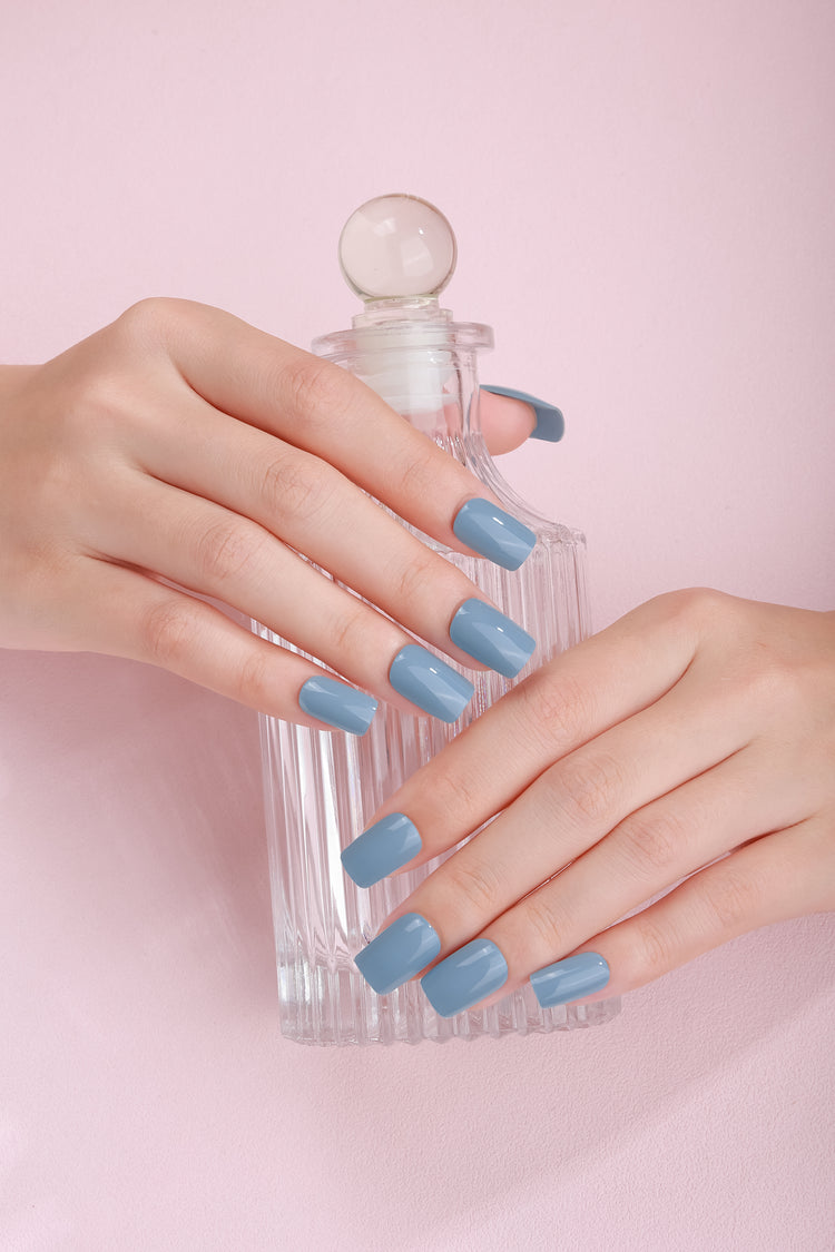 A soft, slate-blue with a velvety shine—perfect for a cool, understated elegance that transitions seamlessly from day to night.