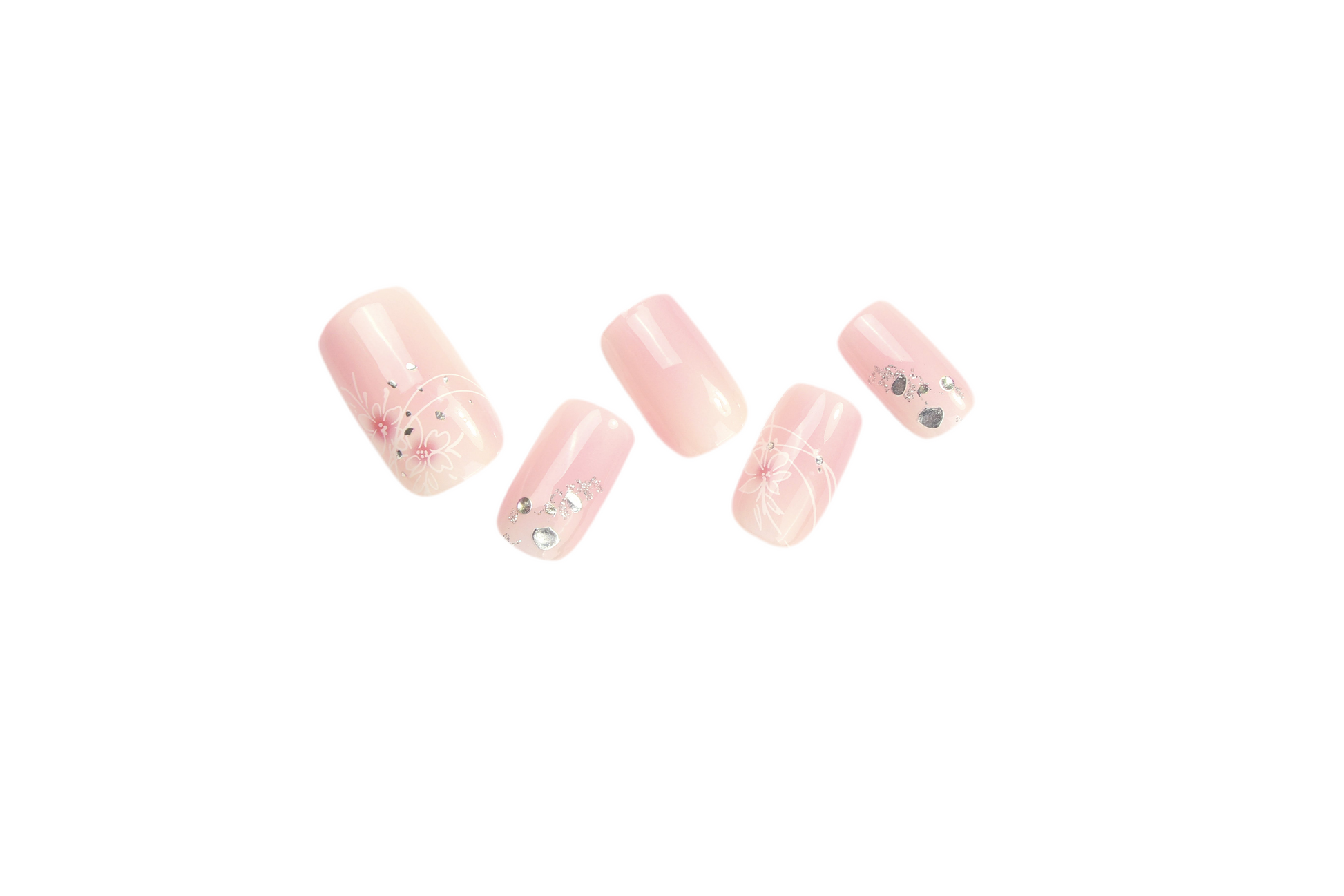 Description: A sheer nude canvas adorned with delicate white florals and sparkling crystal accents—sophisticated, minimal, and timelessly chic.