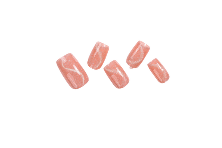 Soft peach with subtle glitter shimmer and a glossy finish—fresh, radiant, and effortlessly chic.