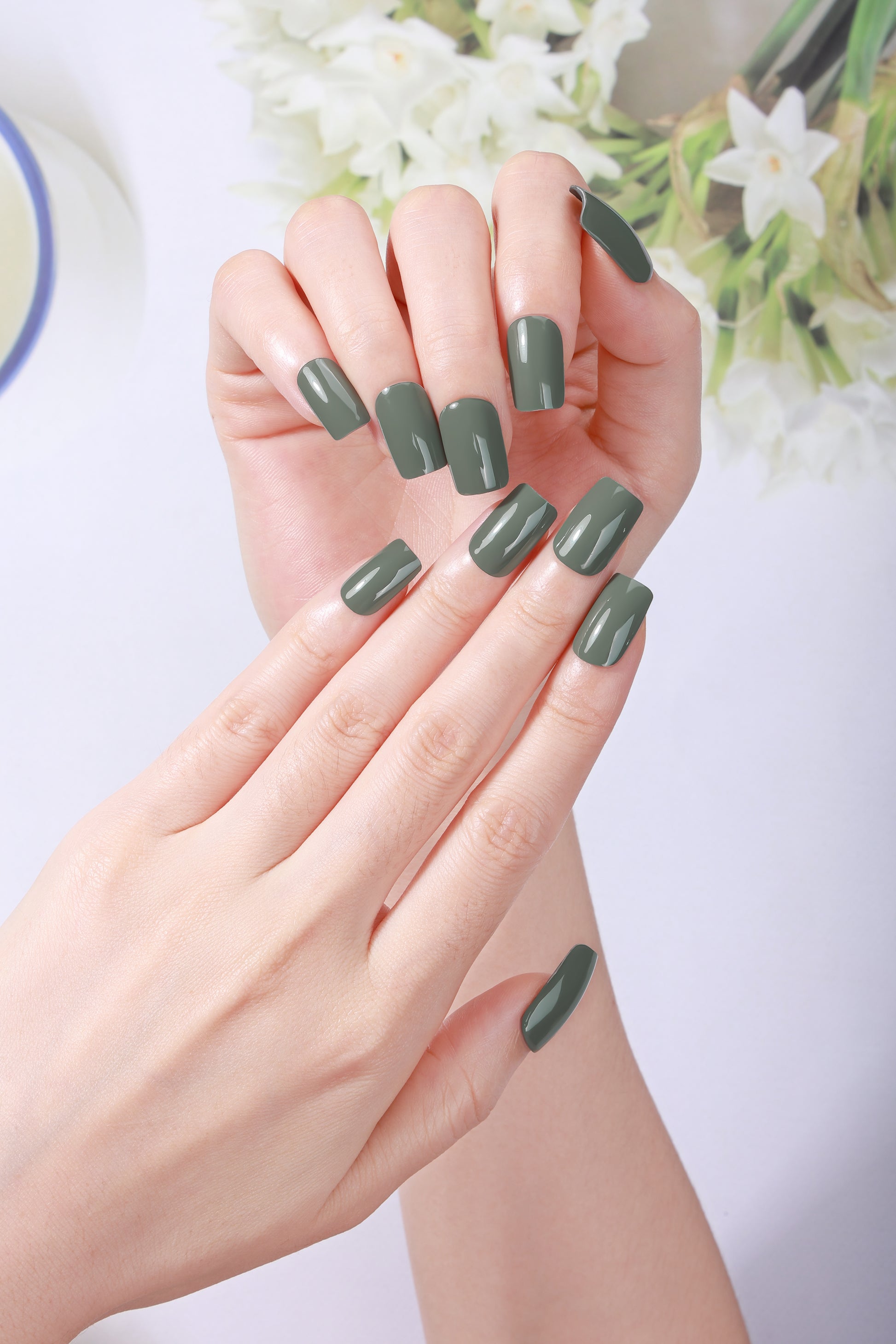 A smooth glossy forest green shade that brings a calm, earthy, and modern touch to your manicure.