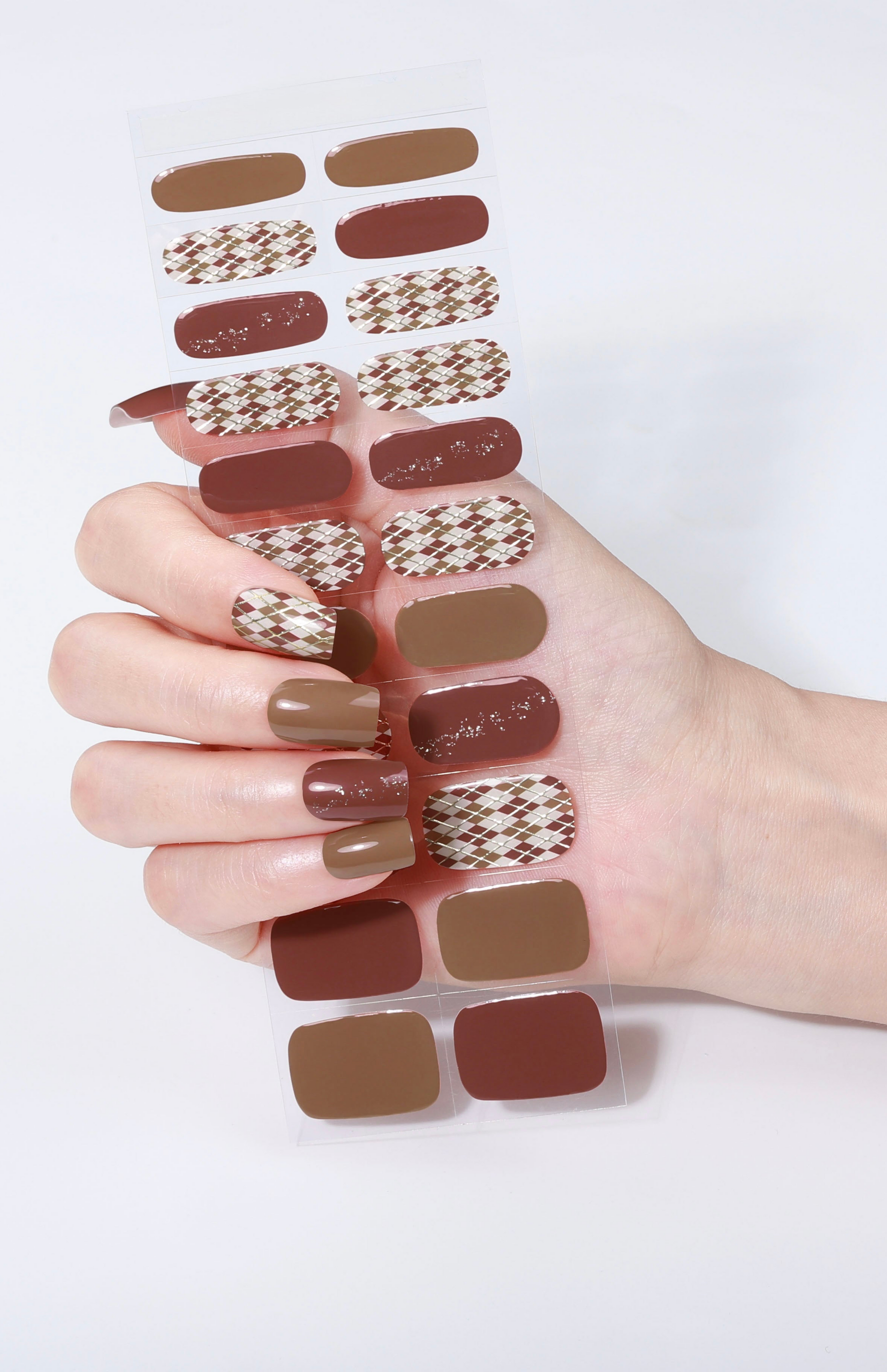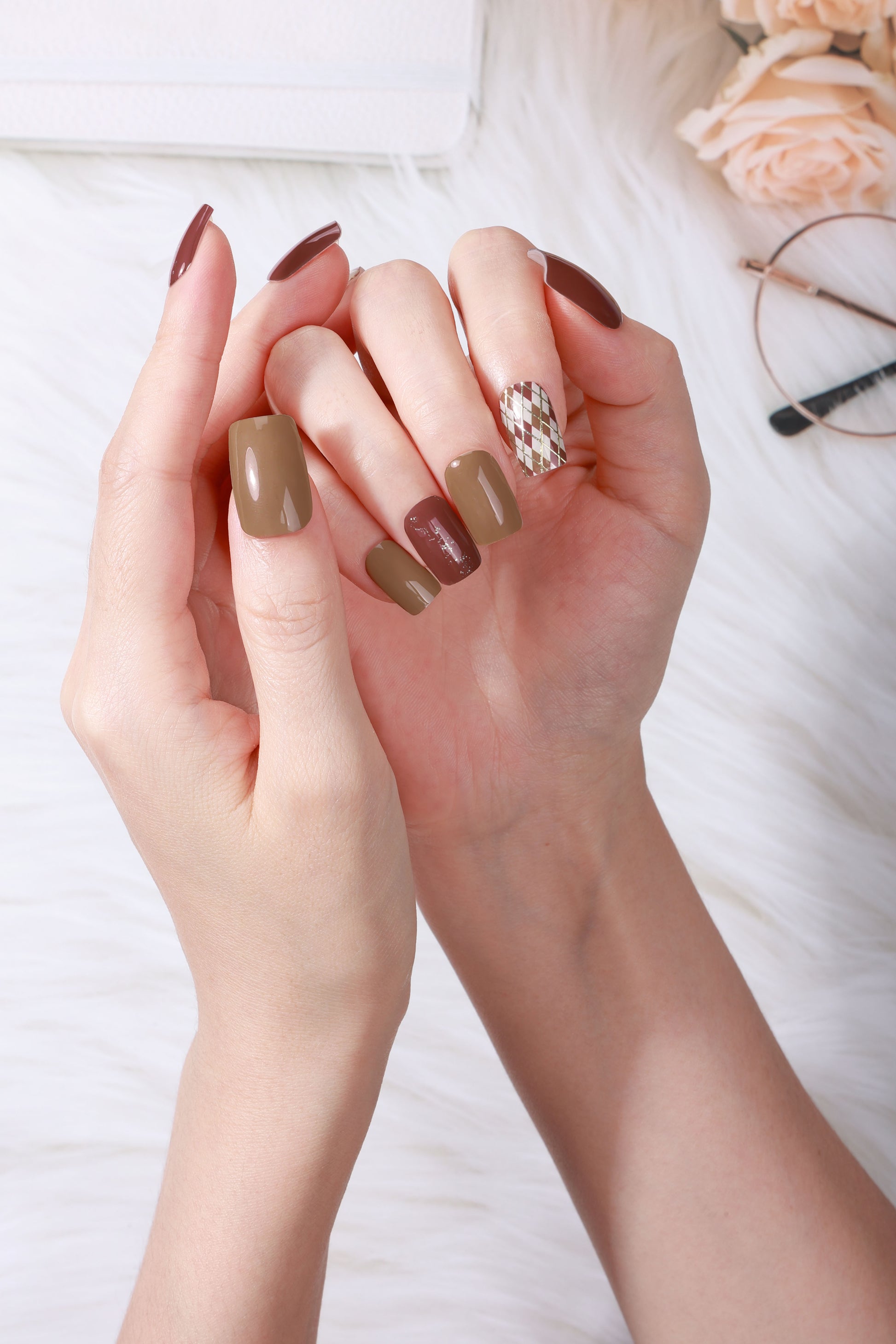 A mix of warm browns and burgundy with a chic argyle accent—cozy, classic, and perfect for fall fashion vibes.