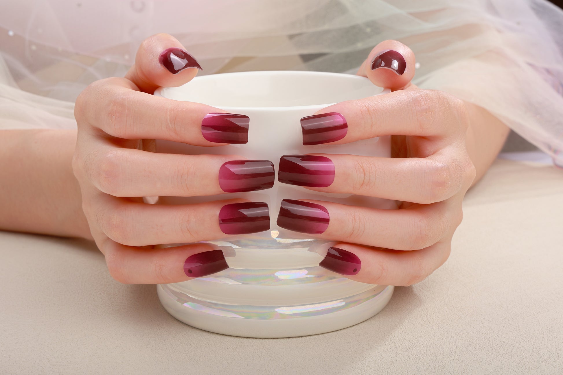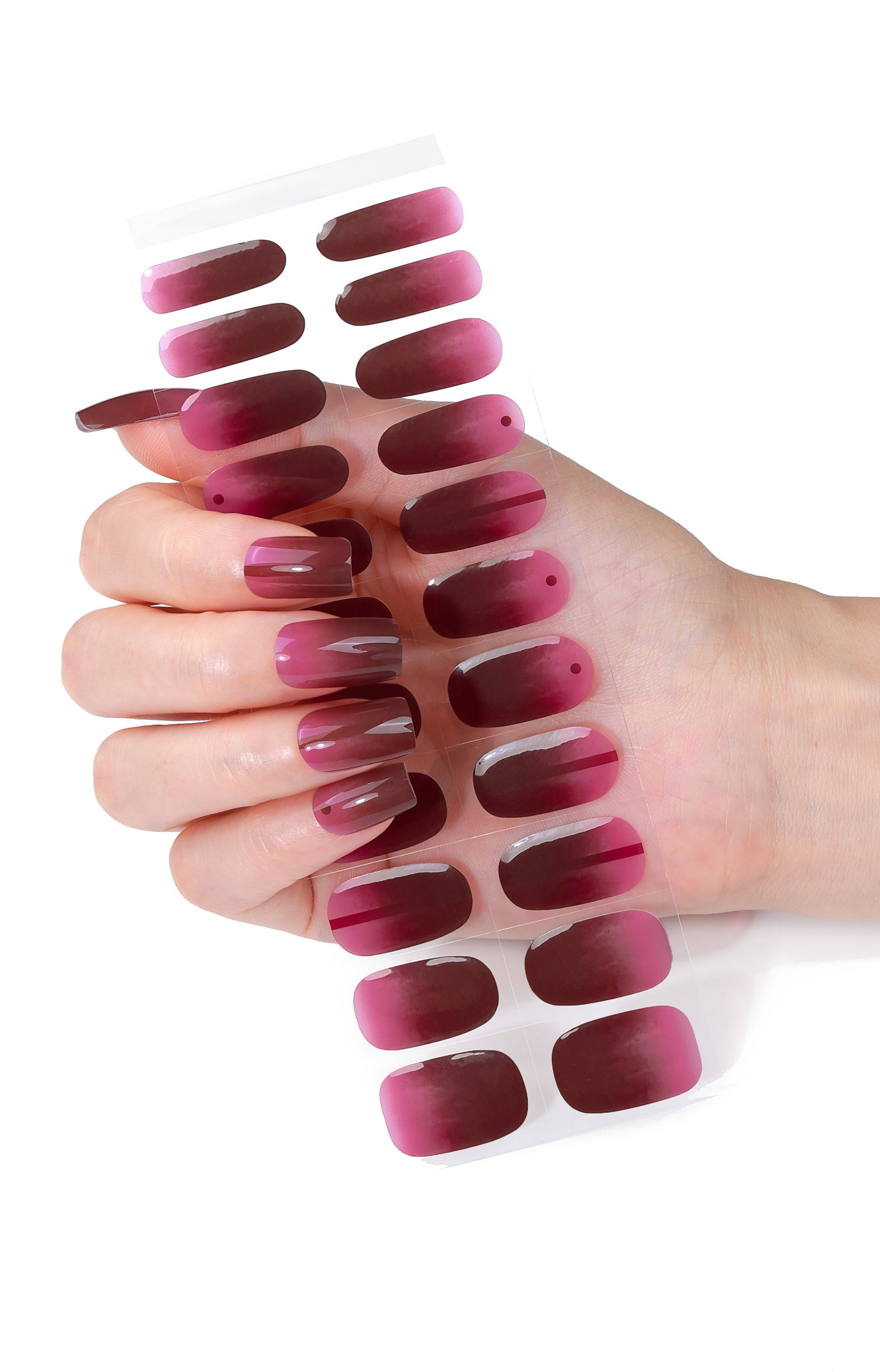 A deep ombré of wine and berry hues—mysterious, modern, and irresistibly bold, like a twilight sky fading into night.