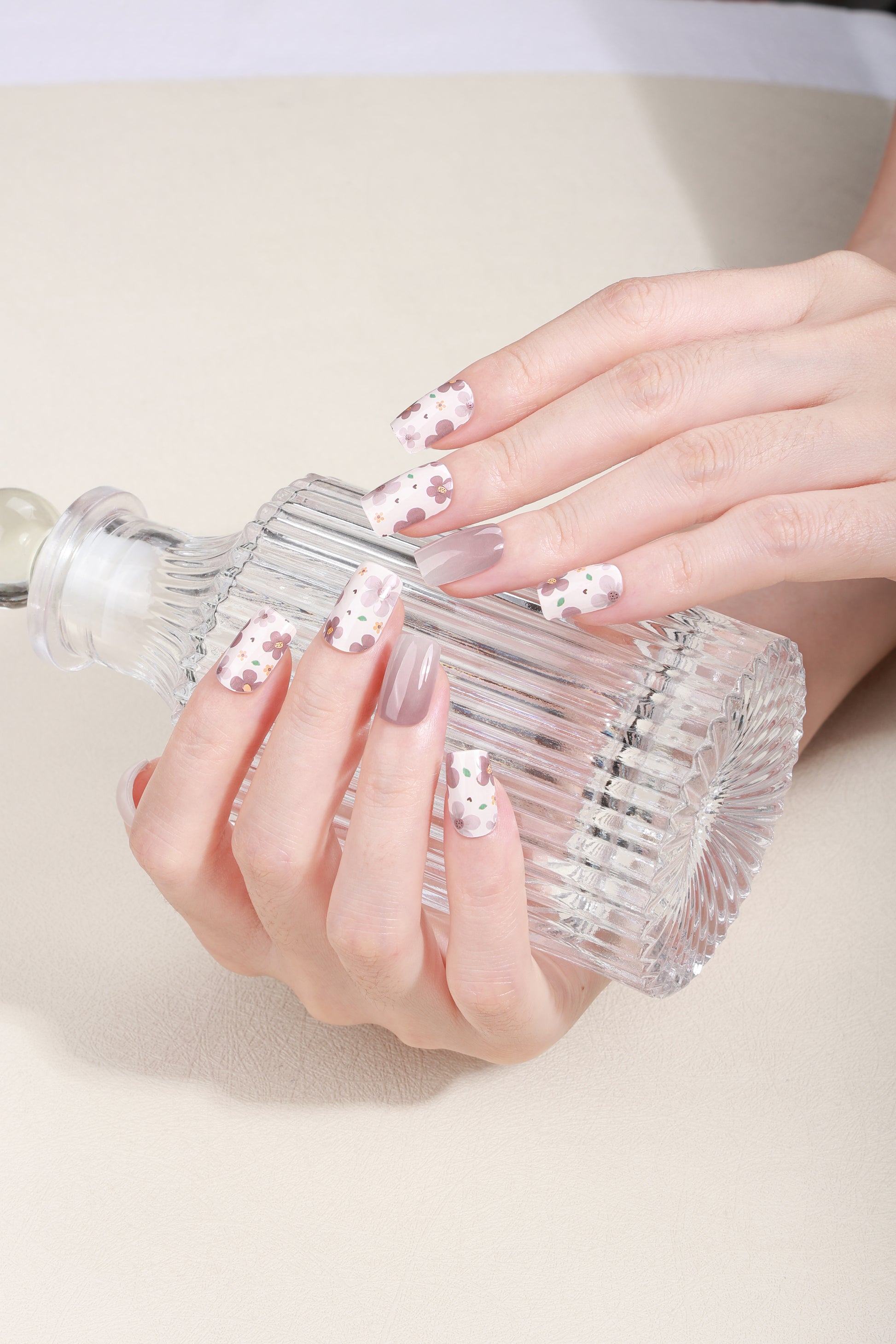 A taupe and white mix adorned with delicate, vintage-inspired florals—sweet, stylish, and effortlessly charming.