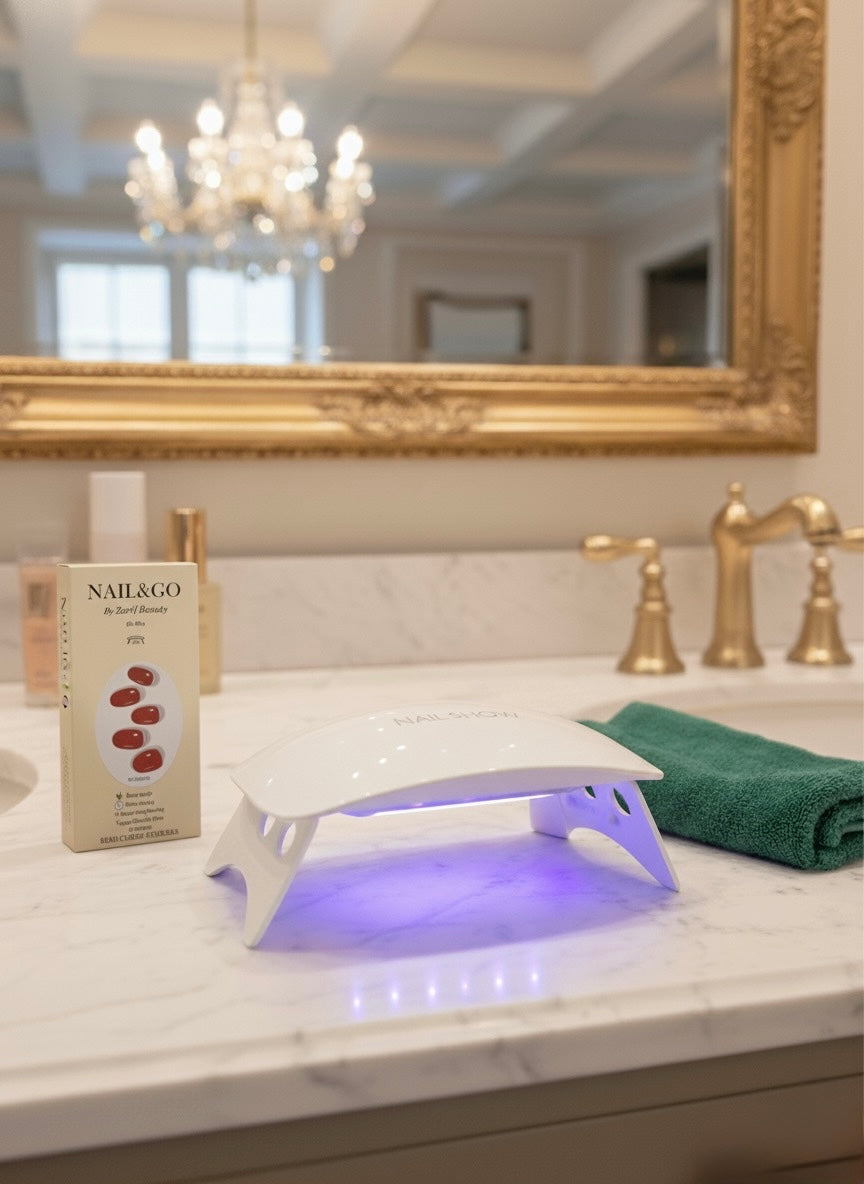 Its primary function is to quickly cure (harden) gel nail polish and semi-cured gel stickers (like the 'Nail&Go') using its UV/LED (blue) light.